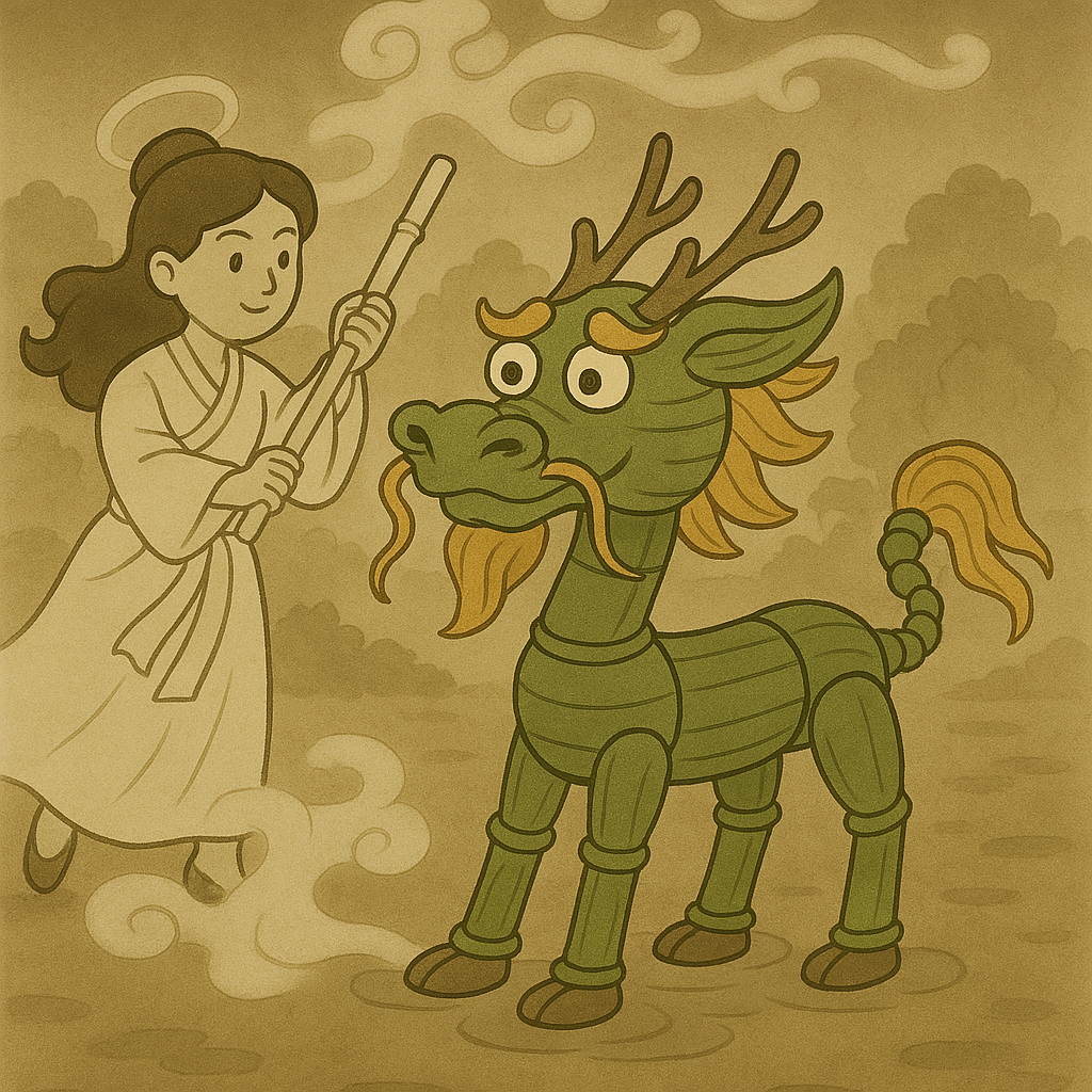 从前,在“中土脾州”住着一头脾气古怪的竹麒麟。它平时性情温和,可一旦脾虚气弱,就会闹起脾气。这时,大地湿浊弥漫,人们食欲不振、体虚乏力,甚至水肿失眠。有一天,竹麒麟又“闹脾气”了!它的身体开始失衡:竹麒麟身体的被湿气缠绕,变得沉重僵硬,无法驱散水湿;竹麒麟金鬃失去光泽,百姓气虚易汗,伤口难愈;竹麒麟四蹄被水湿淤堵,无法渗水利尿,夜里心神不宁。百姓们焦急万分,这时,三位药仙赶来相助:白术仙子挥动白竹杖,扫除湿浊,让竹麒麟的竹身恢复轻盈(健脾祛湿);黄芪将军注入金芒,振奋阳气,使金鬃重新闪耀(补气固表);茯苓童子引甘泉疏通经络,让四蹄恢复灵动(利水安神)。竹麒麟终于不再“闹脾气”,脾州大地恢复生机。人们恍然大悟!!!原来,“竹麒麟闹脾气”= 脾虚湿盛+气虚水停,而白术、黄芪、茯苓正是安抚它的三大法宝!从此,每当有人脾胃失调,大家就会笑着说:“快去请竹麒麟!”