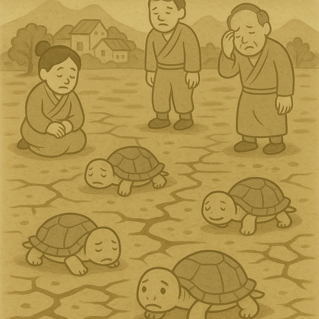 百龟湖曾是一片生机勃勃的湖泊,湖水清澈,百龟悠然。然而,随着时间推移,湖泊逐渐干旱——湖底龟裂,百龟们失去活力,村民们也变得疲乏、失眠,甚至汗流不止。