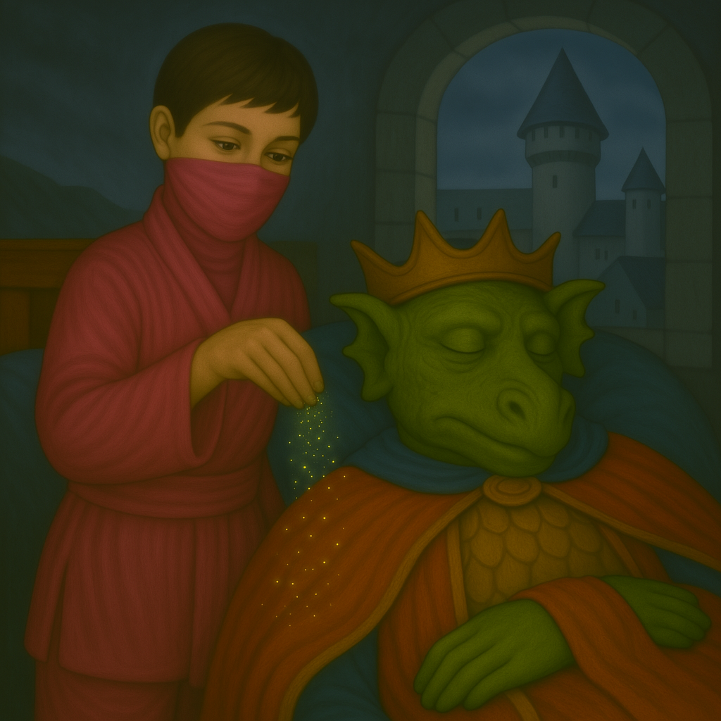 首先,酸枣国派出酸枣仁忍者,他悄然降临,身披枣粉红色战袍,在心神国的王宫内撒下安眠粉。这神秘的粉末滋养了龙王虚浮的心血,使他终于安然入睡,精神不再疲惫。百姓们也跟着夜寐安稳,国度终于迎来了久违的宁静。