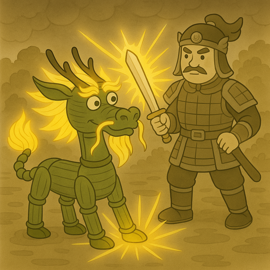 从前,在“中土脾州”住着一头脾气古怪的竹麒麟。它平时性情温和,可一旦脾虚气弱,就会闹起脾气。这时,大地湿浊弥漫,人们食欲不振、体虚乏力,甚至水肿失眠。有一天,竹麒麟又“闹脾气”了!它的身体开始失衡:竹麒麟身体的被湿气缠绕,变得沉重僵硬,无法驱散水湿;竹麒麟金鬃失去光泽,百姓气虚易汗,伤口难愈;竹麒麟四蹄被水湿淤堵,无法渗水利尿,夜里心神不宁。百姓们焦急万分,这时,三位药仙赶来相助:白术仙子挥动白竹杖,扫除湿浊,让竹麒麟的竹身恢复轻盈(健脾祛湿);黄芪将军注入金芒,振奋阳气,使金鬃重新闪耀(补气固表);茯苓童子引甘泉疏通经络,让四蹄恢复灵动(利水安神)。竹麒麟终于不再“闹脾气”,脾州大地恢复生机。人们恍然大悟!!!原来,“竹麒麟闹脾气”= 脾虚湿盛+气虚水停,而白术、黄芪、茯苓正是安抚它的三大法宝!从此,每当有人脾胃失调,大家就会笑着说:“快去请竹麒麟!”