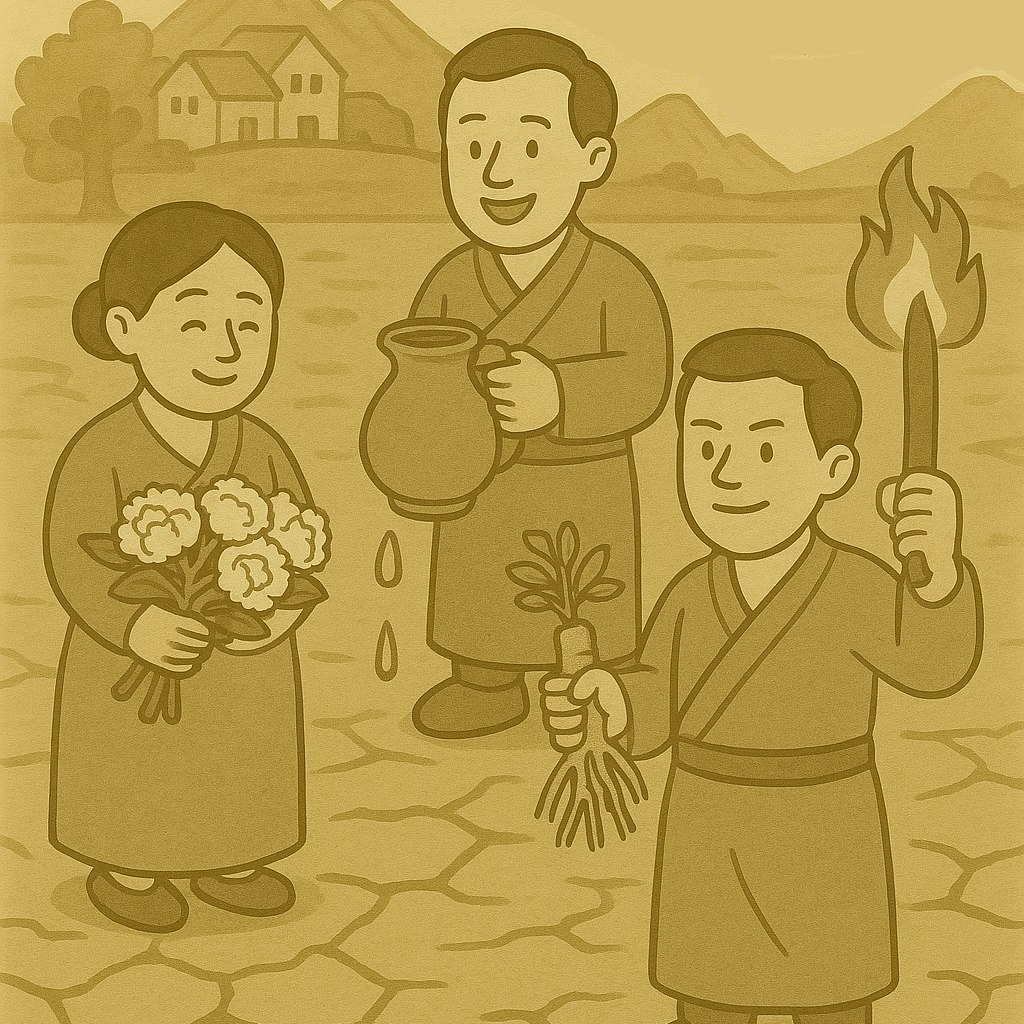 当归村民取出甘泉,将清澈的水注入湖中,使水流重新畅通。他的力量补血活血,湖泊慢慢恢复生机,村民们气血充盈,疲乏消散。