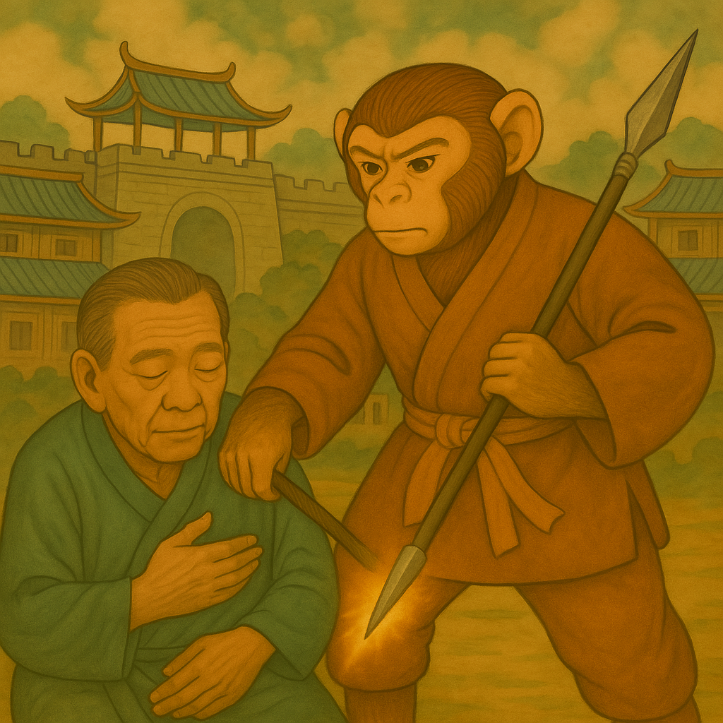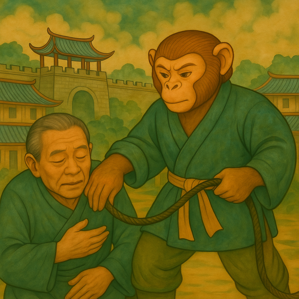 三位黄猴齐聚六腑城,联手施展通降神技——猛爪一扫,疏通腑气;神鞭挥舞,行气化痰;破空矛闪耀,除痞化积。顷刻之间,六腑城的瘴气消散,百姓们恢复健康,街道上重新回荡着欢笑与安逸。